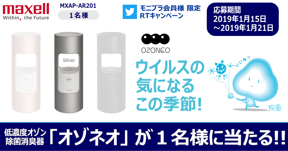 インフルエンザの話題がニュースを騒がし、空気中のウイルスも気になる季節… ウイルス対策にオススメの低濃度オゾン除菌消臭器「オゾネオ」 が当たる!