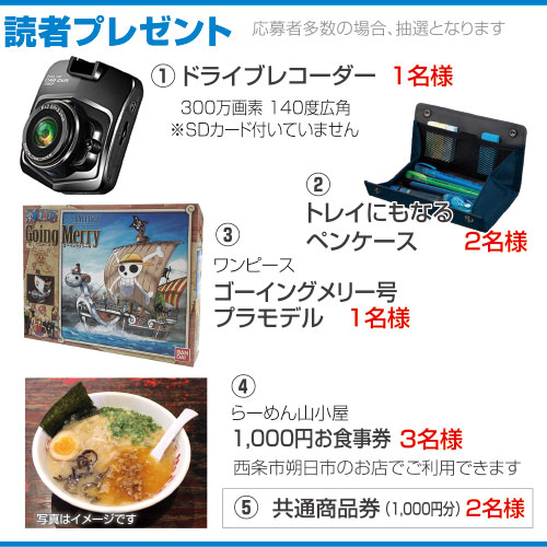 ドライブレコーダーなどを抽選で9名様にプレゼント