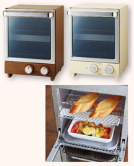 同時にちがう料理が作れる2段構造で、3灯のヒーターを搭載していて、上手に使い分ければ焼きムラも少なく、お手軽にさまざまなオーブン料理が楽しめます。