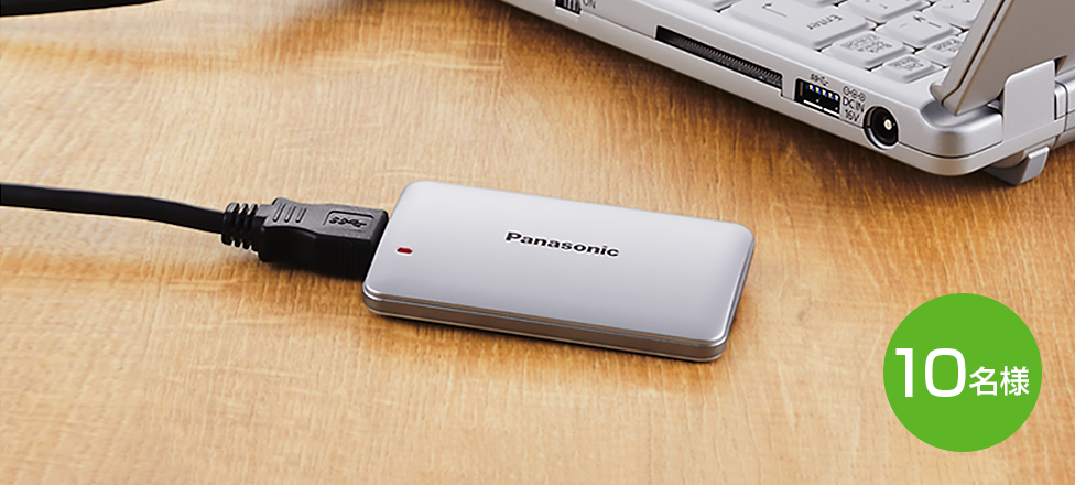 大容量ポータブルSSDは気軽に持ち歩ける軽量ポケットサイズ。最大400MB/秒の高速転送でレッツノートとの相性もピッタリです。