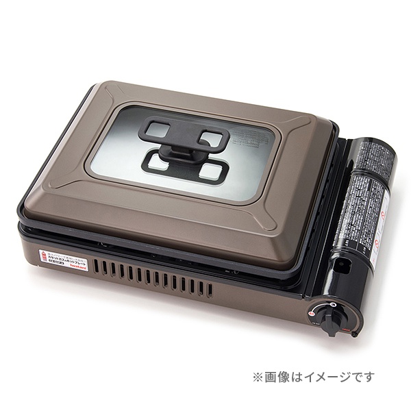 カセットガスが燃料のホットプレート。電源不要なので使う場所を選ばないうえ、圧力感知安全装置、容器装着安全装置を搭載している。 プレートを外せばごとくがついており、カセットこんろとしても使えてさらに便利!