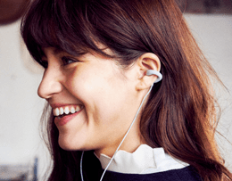 耳にはめ込まず、イヤカフのように挟んで装着するイヤホン。周囲の音も聞き取れるため、音楽を聴きながらの会話も可能に。鼓膜への負担が少なく、長時間使用しても疲れにくいのも魅力。