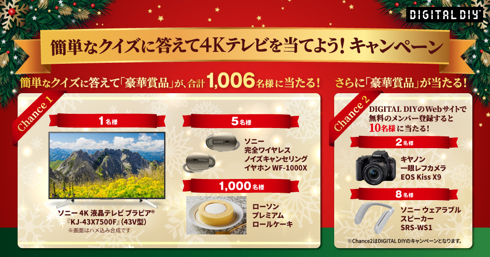 ソニー ブラビア 4K TVなど を抽選で1,006名様にプレゼントいたします。