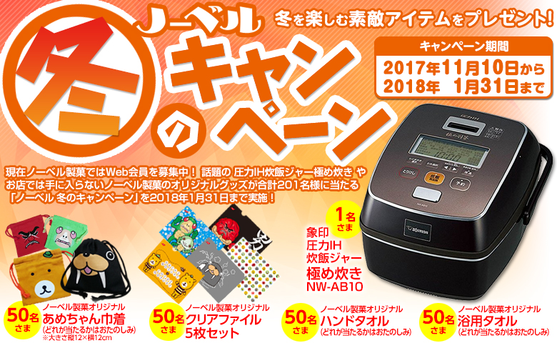 ・ノーベル製菓オリジナル 浴用タオル 50名様