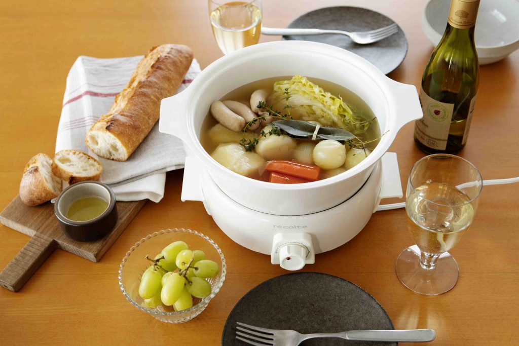 1~2人はもちろん、3~4人でも楽しめる1.9リットルのセラミックボウルにフタ、蒸し料理用網、たこ焼きプレート、専用レシピがついています。